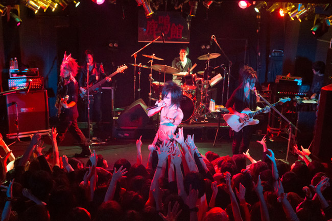 After throwing another water bottle into the crowd, MORRIE finally did a short MC, “It’s not really all that hot in here…I mean, no one passed out, right? (laugh) I’m pretty warm though. (laugh)” He also announced his plans for 2015: new song release and tour. “All songs are by Shinobu!” MORRIE said, raising his hands towards Shinobu but quickly waved his hands to signal that was only a joke. He continued, “All songs will be written by HIRO!” HIRO smiled at his joke. Wrapping up the MC, MORRIE said next will be the last song, to which the crowd responded by “Ehhhhhh…!!!” but he cracked a smile and said, “Welllll, you know I kinda have to say that it is.” The band then all looked at Shinobu to start, causing the crowd to laugh. Everyone had their hands up and danced for Sen to yamiyo ni. MORRIE wrapped his hands around HIRO‘s shoulders during the solo, to which Shinobu playfully pretended to peek at them. After finishing the encore at about 9pm, the band smiled and waved to the crowd as they left the stage.