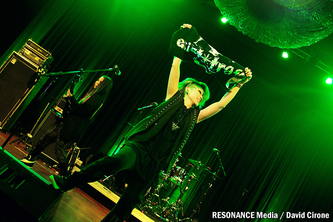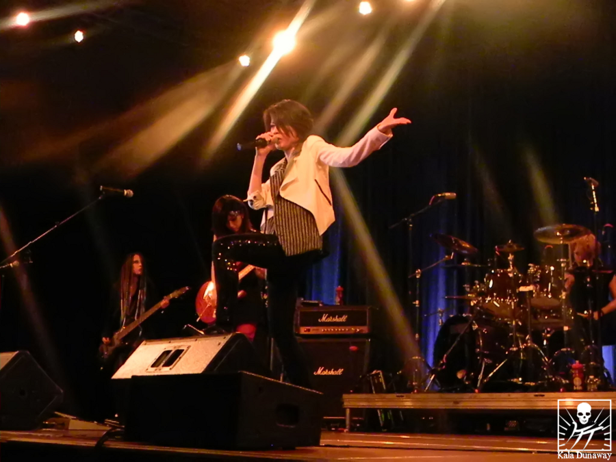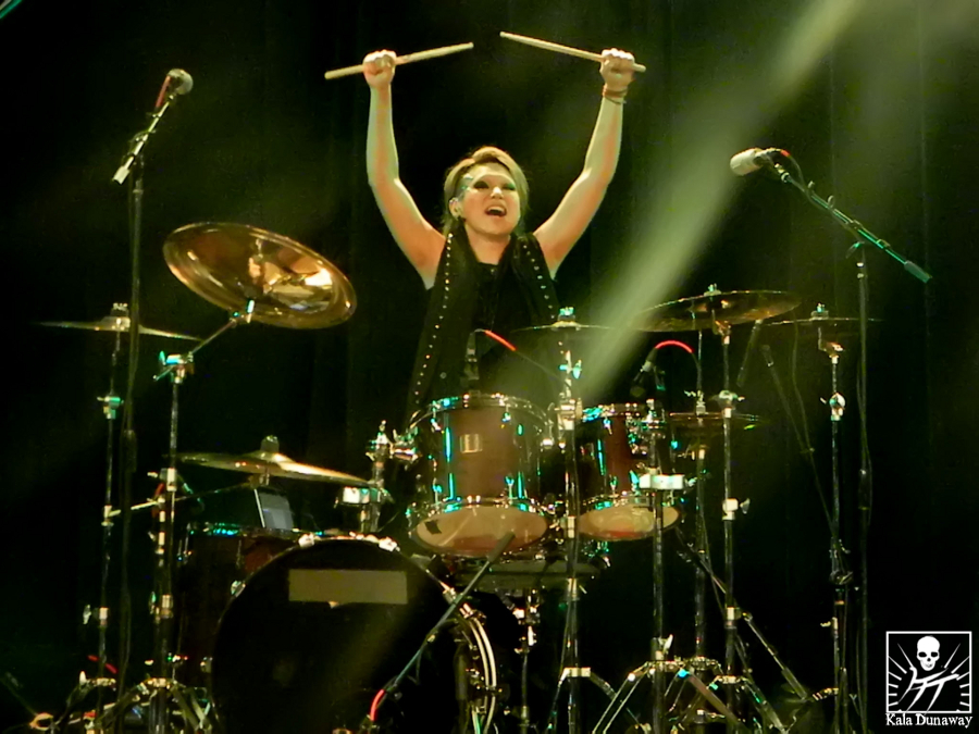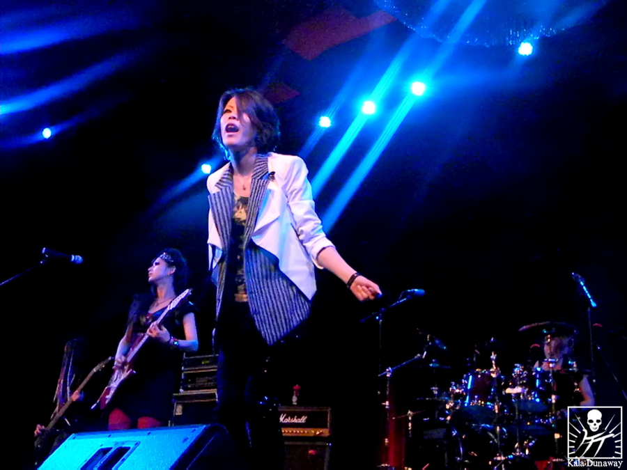 Granted, it didn’t take long for exist†trace to take their place on the stage nor was there time for anyone to hesitate when Mally hit the drums. The entire ballroom at that moment shook as the audience cheered and the music roared out of the stage and out of the door. The ladies stood with their back straight, facing everyone head on.