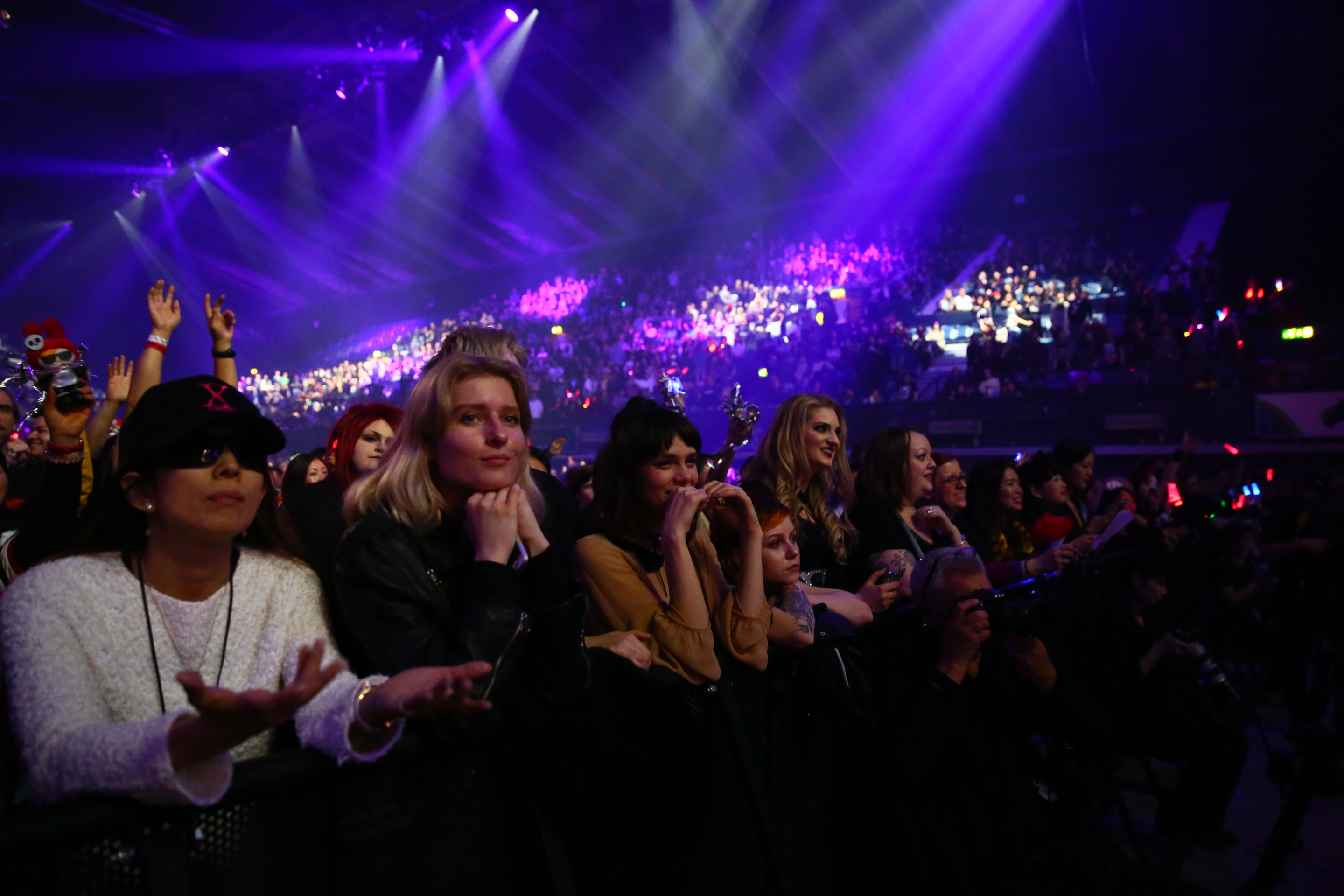 Around 2.30pm, it was time for VIP ticket holders to go in for their Soundcheck Experience. Walking into the almost empty arena lobby, you could hear the sound of X filling the venue already. VIP fans hurried into the dimly lit arena where the band were already in the midst of their soundcheck, with staff busy working and the band running through songs as the lighting technicians arranged the lighting. The VIPs were allowed to watch around 30 minutes of the sound check before leaving to wait for their onstage photos. However, the soundcheck ran over schedule with the band still soundchecking when general ticket holders were allowed into the venue. VIP fans were cordoned off as they waited for the stage to be cleared for their photos. Soon enough the band left the stage to prepare for the show, allowing both general and VIP ticket holders into the main arena. VIP fans were lead to the empty stage where they got on in groups of 10 to have their photo taken in front of Yoshiki’s famous Tama drum kit, then ushered off to their seats for the show.